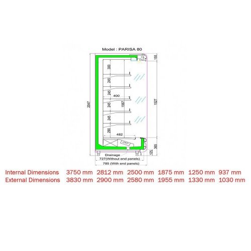 Features of the ColdCo Parisa Remote Open Multideck Chiller are: